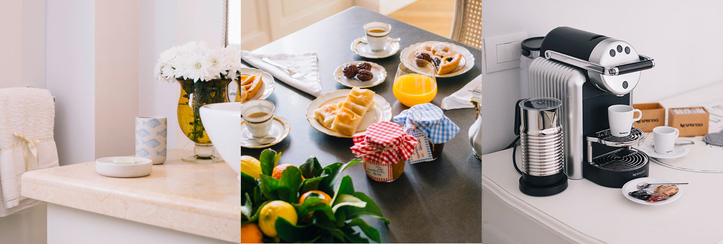 A VillaAGA è possibile vivere un soggiorno di charme, nel relax della piena riservatezza e indipendenza, lasciando la massima libertà agli ospiti di scandire i propri tempi in totale privacy. Ogni camera, infatti, è dotata di corner Nespresso con macchina del caffè e lattiera, provvista di un vasto assortimento di capsule di caffè, tisane per concedersi il lusso di una colazione o uno spuntino secondo i propri tempi.